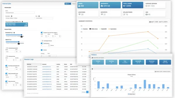 ISP Billing Software is a robust and cost-effective solution for Internet control, bandwidth limiting (daily, monthly), payment processing (vouchers and credit cards), marketing (video ads, surveys, emails), with powerful analytics.