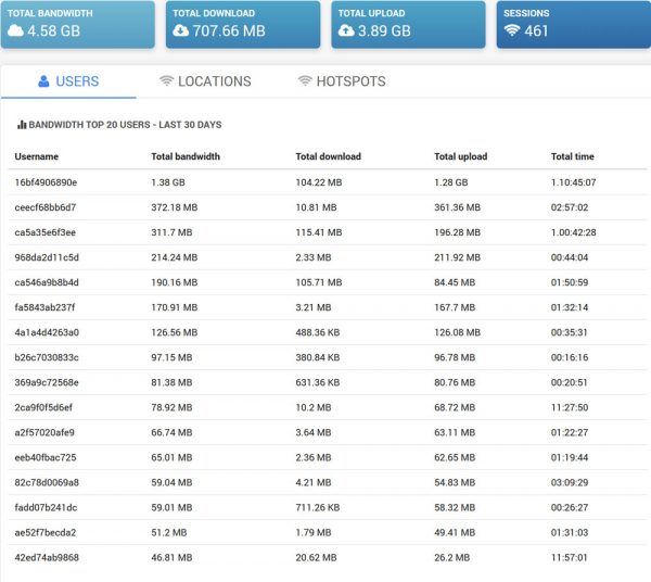 You will be able to monitor Internet usage, apply limits through Internet plans, or set specific limits to individual users.